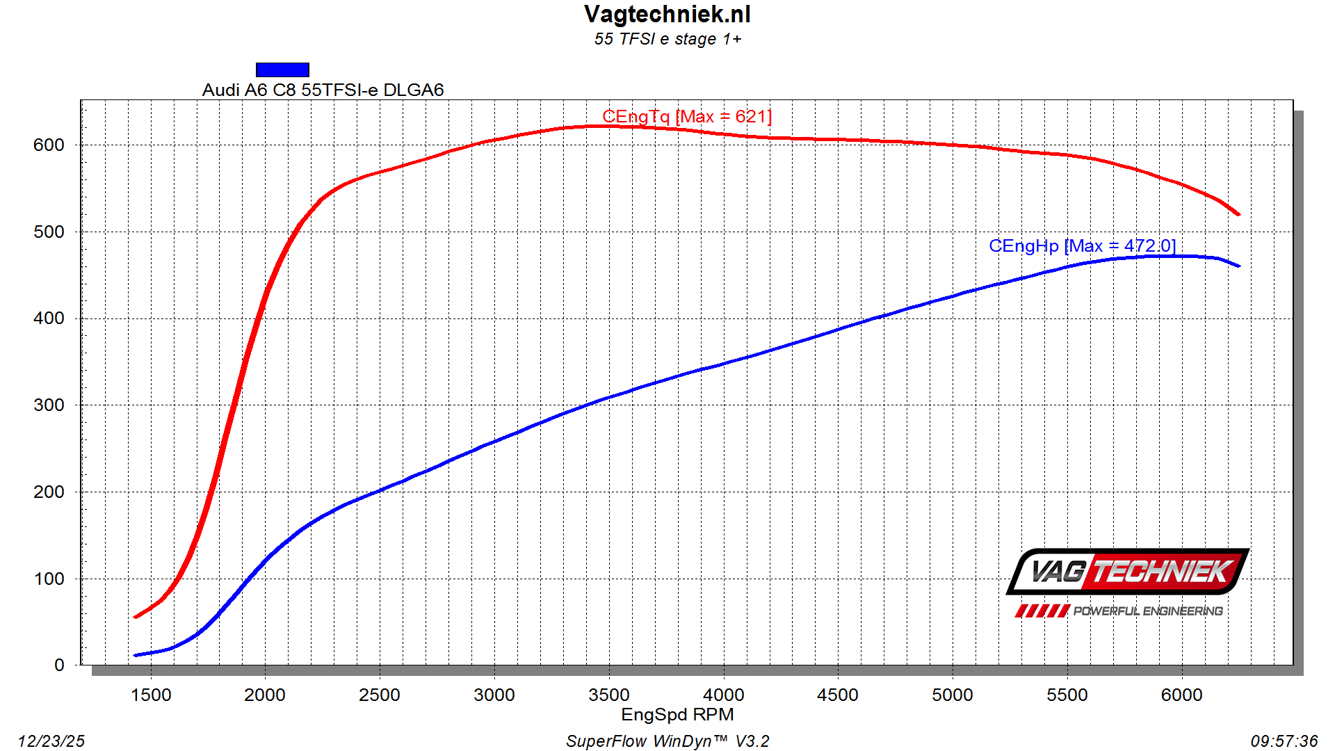 Bij een stage1+ chiptuning wordt uw auto afgesteld op onze Superflow vermogenstestbank. Dit heeft enkele voordelen. Ten eerste krijgt u een vermogensuitdraai mee met daarop het koppel en vermogen voor en na de chiptuning. Op de vermogensbank is het mogelijk het koppelverloop zo goed mogelijk af te stellen, uiteraard wel binnen de technische mogelijkheden. Door deze maatafstelling is het mogelijk hogere waardes te realiseren dan de stage1 software waarbij we uiteraard binnen de veilige limieten blijven. Bij benzine auto’s dient er voor de stage1+ chiptuning gebruik gemaakt te worden van RON 98 brandstof om de opgegeven waardes te halen.