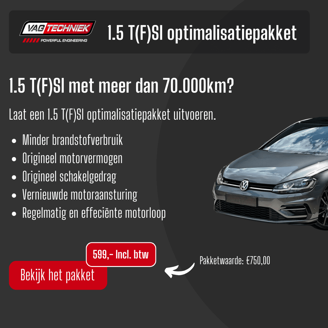 1.5 T(F)SI Optimalisatiepakket Geef je auto zijn originele kracht en prestaties terug met Walnut Blasting én software optimalisatie op maat.